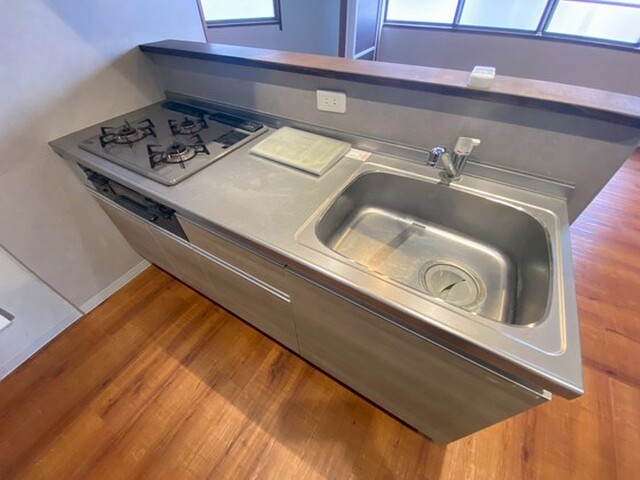 人気のカウンターキッチン☆室内リフォームしキレイです☆3口コンロでお料理もはかどります☆路面電車駅徒歩3分!人気の最上階角部屋です☆お問い合わせは良和ハウスまで☆
