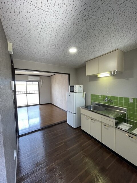 - バルコニー/クッションフロア/南向き/全居室フローリング/エアコン/クローゼット/TVドアホン/オープンキッチン/ユニットバス/シャワー/室内洗濯機置場/トイレ/2階以上/プロパンガス/IT重説 対応物件